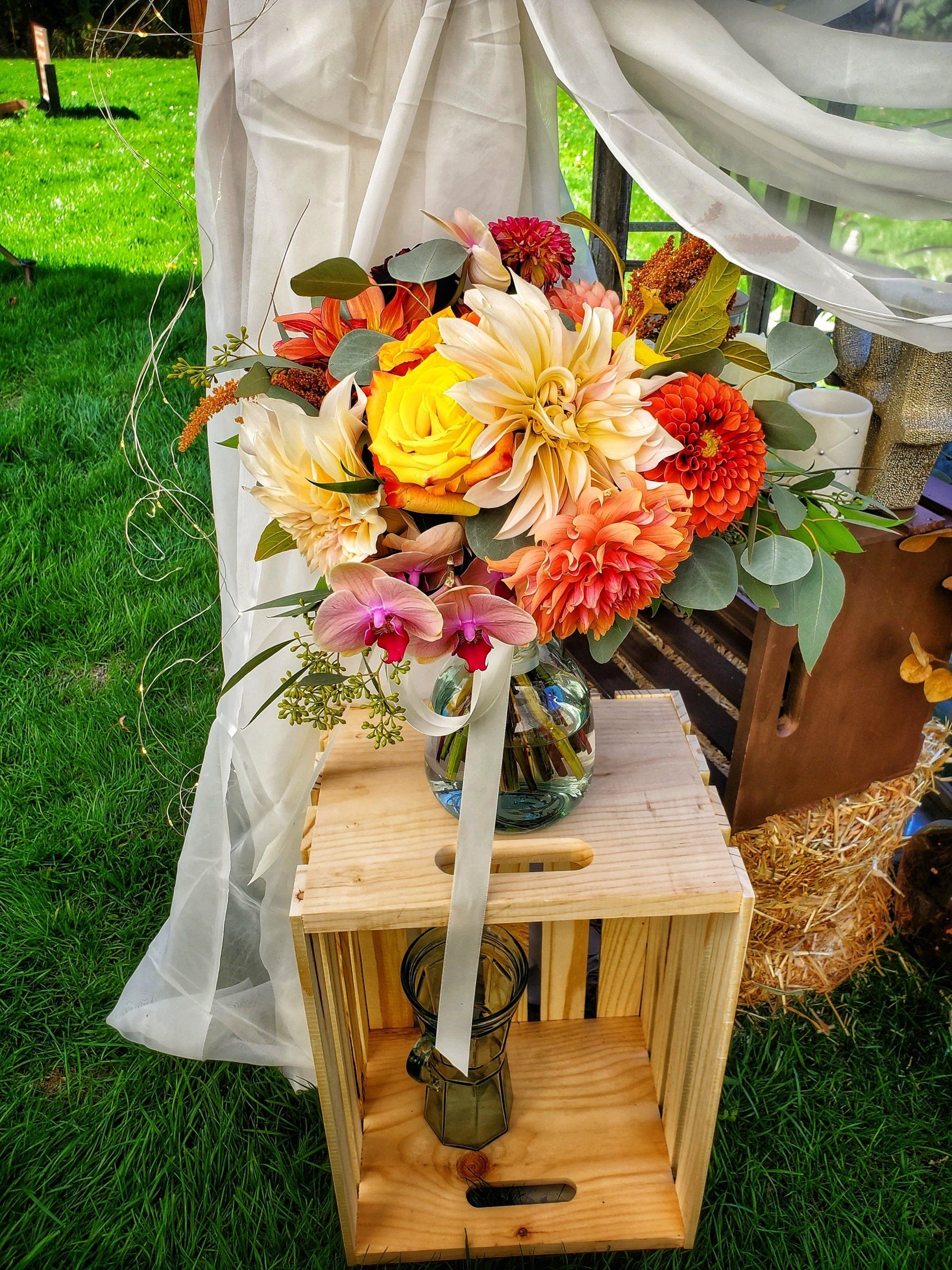 Need a bucket of flowers? Contact us! It's one of the many services that we provide.