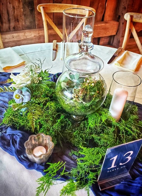 A beautiful couple in a gorgeous venue! I loved that this couple allowed me some freedom to do something different. The bride wanted lots of rich greens and ferns everywhere. We used a mix of apothocary jars to create a unique an elegant setting. ❤️